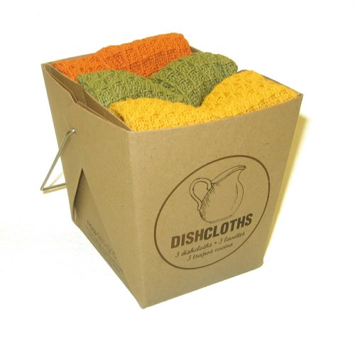 Present this adorable set of three dishcloths to a new neighbor, a host, or keep it sitting near your sink for a stylish display option. These 100% cotton hand towels measure 13x13? and have waffled texture for the best possible cleaning and drying. They come displayed in a very trendy Chinese take-out box with a metal holder for easy carrying or giving. So cute and convenient, this set is great for having in the bathroom, kitchen, and by the stove or table.